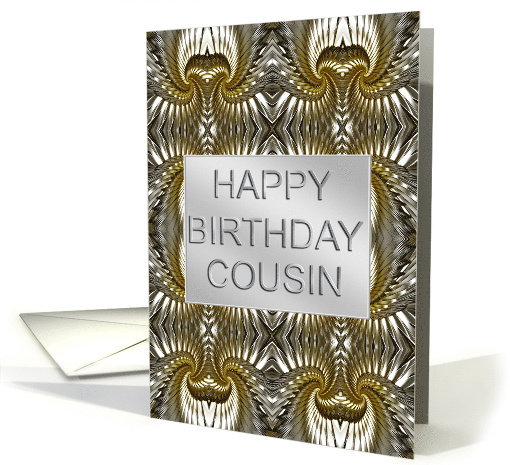 Birthday card for a cousin. What an unusual way to say Happy Birthday. Metal blades form an abstract pattern. Shiny metal pattern, A great birthday card for a man.