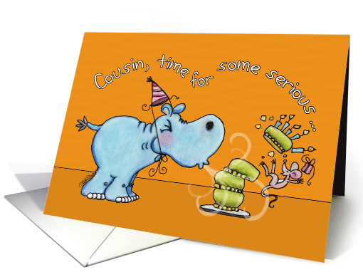 | Artist Notes: | ©Christie Black. It is your cousins birthday and you want them to take this wish thing seriously! Wish them a happy birthday with this hippo blowing out the candles on a cake which sends it flying along with the little mouse guest. |