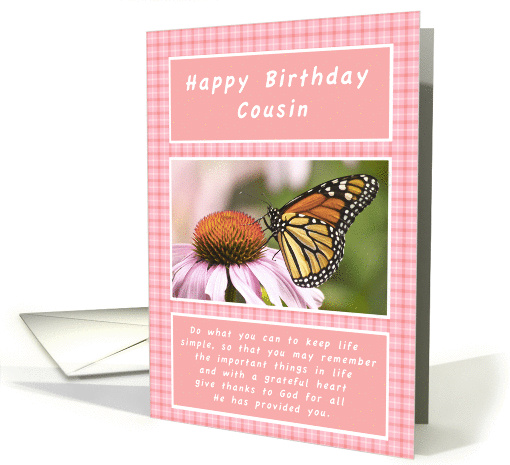 When it comes to your cousin you will want to find that special card for their birthday, well this just may be it. It contains a wonderful message about keeping life simple and giving thanks for everything. It will be clear you gave them a lot of thought in selecting the perfect card for them.