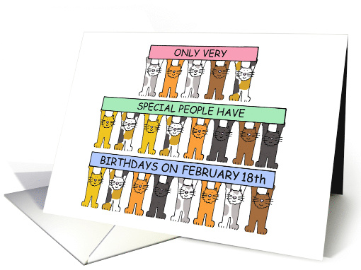 | Title: | February 18th Birthday Cartoon Cats Holding Up Banners |