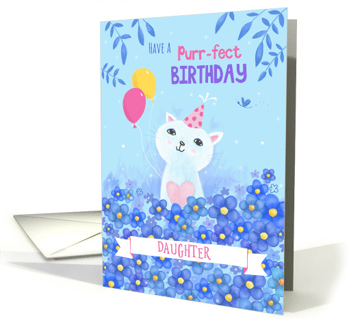 Daughter Purr-fect Birthday Cat with Hat and Balloons