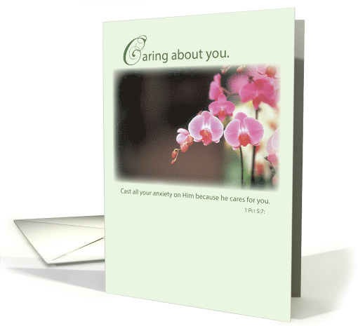 | Artist Notes: | The parent of a cancer patient will certainly appreciate receiving your encouragement message with this beautiful card. An elegant design with pink orchids and religious words about faith. An inspiring and supportive way to let a mother or a father know you are there for them. |