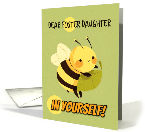| Artist Notes: | A cute bee holding a leaf on a green background with the text "dear foster daughter (believe - or, bee leaf) in yourself!" A sweet encouragement card to send to your wonderful foster daughter to show your love and support. |
