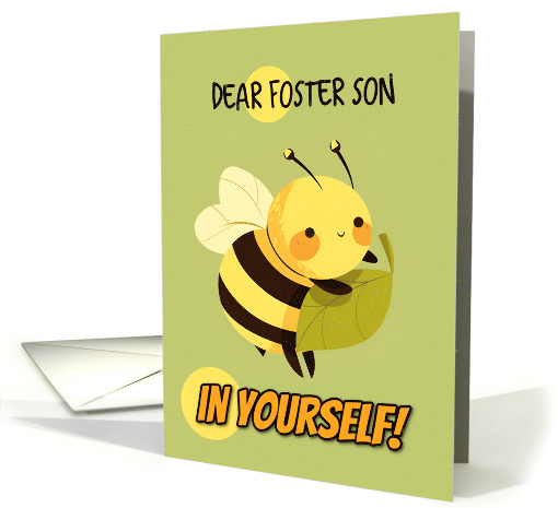 | Artist Notes: | A cute bee holding a leaf on a green background with the text "dear foster son (believe - or, bee leaf) in yourself!" A sweet encouragement card to send to your wonderful foster son to show your love and support. |