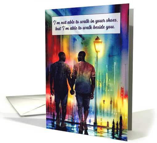| Artist Notes: | If someone you care deeply about is struggling and needs a bit of encouragement, this watercolor rainbow wash greeting features two brown-skinned men walking side by side to pair with a sentimental message of support. |