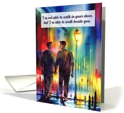 | Artist Notes: | Offer your encouragement and support to someone who is having a difficult time by giving them this beautiful and colorful greeting with a tender message of; "I'm not able to walk in your shoes, but I'm able to walk beside you." Perfect for the LGBTQ community. |