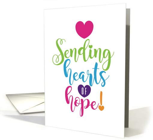 Sending Hearts of Hope. Wellness, Healing, Support, Understanding, a Helping hand. Whether someone is sick or going through Social Distance this card is a positive thought. Hopeful for a positive resolution and outcome. Light in the future. Love hearts that are supportive and sweet. Are you separated from a loved one? Do you want to say I miss you? Hoping this will end in a good way? Let them know that even though you are not with them you want to be? These are the words in colorful, upbeat, calligraphic style. With the symbols of Hearts and Hope. Love and light.