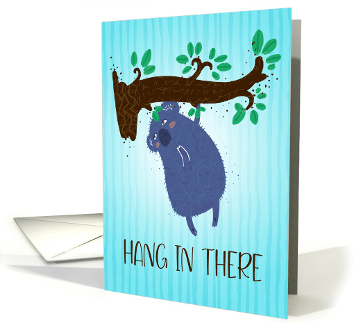| Artist Notes: | An encouragement card with a humorous touch. A cartoon illustration of a Koala in blue color hanging through a branch of a tree. Koala gives you a positive message to keep going and not to give up. |