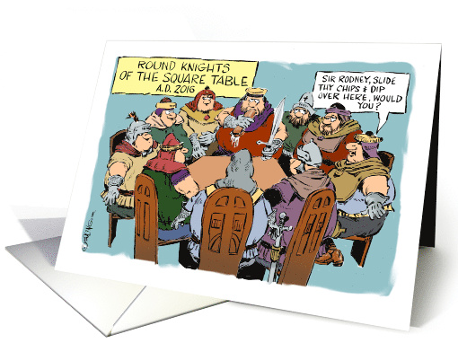 | Artist Notes: | The round knights of the square table have slackened in their journey to weight loss. Your friend's journey toward weight loss and a diet that works for them is a crusade of epic proportions. This is an encouragement card. |