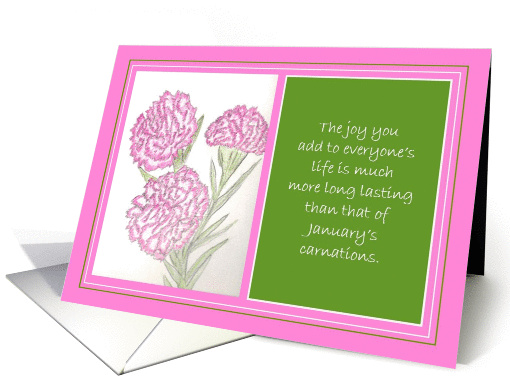 | Artist Notes: | Happy birthday to someone born in January who adds long lasting joy to your life. These are some carnations I drew that I thought may add some happiness to someone's birthday. |