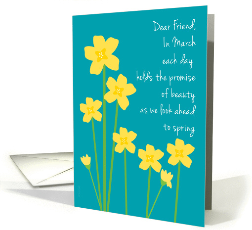 | Title: | Friend March Birthday Yellow Daffodils on Aquamarine Background |