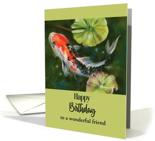 | Title: | Birthday for Friend Colorful Koi Fish with Lily Pads Custom |