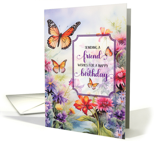 for Friend Birthday Butterflies and Bright Wildflower Garden