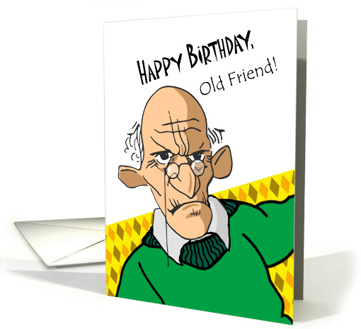 Funny Happy Birthday Old Friend, Old Man in Green Sweater