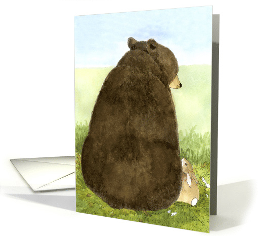 Send Happy Bear-thday greeting from some bunny like you with this watercolor illustration of a bear and bunny friends.