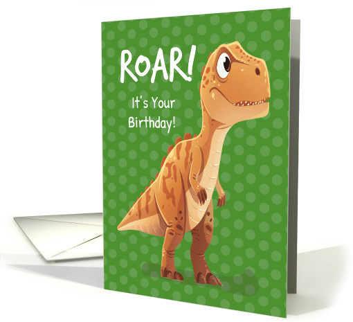 | Artist Notes: | A cheerful cartoon T Rex stands against a bold green polka dot background with the fun front message "ROAR! It’s Your Birthday!" This playful design is perfect for celebrating a special little boy’s birthday. The strong T Rex theme, bright colors, and simple layout make it a standout choice for kids who love dinosaurs. Visit my stores for more designs: Sandra Rose Designs: https://www.greetingcarduniverse.com/sandrarosedesigns Sandra Rose Designs Two: https://www.greetingcarduniverse.com/sandrarosedesignstwo |