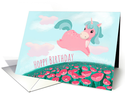 | Title: | Birthday for Girl Cute Cartoon Unicorn Hopping in Meadow |