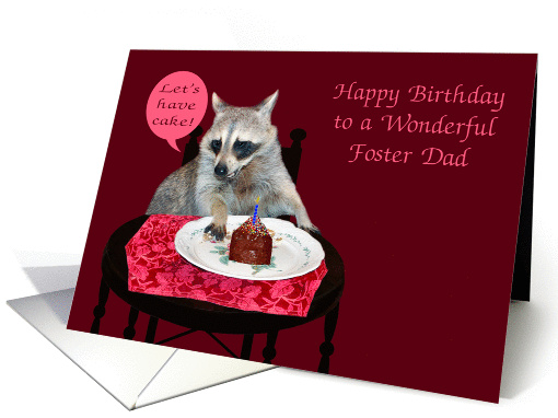 | Title: | Birthday for Foster Dad, raccoon with a piece of cake and lite candle |