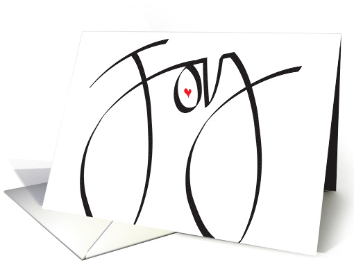 This dynamic black and white card is the perfect way to let someone special, whether a friend or significant other, know just how very special they are to you. The large hand lettered word "Joy", in black, sweeps the height and width of the white card, with high contrast. A tiny red heart dots the middle of the letter "O', adding bright color to the stunning card. The inside wording of the card touchingly says "You are the joy in my heart!"