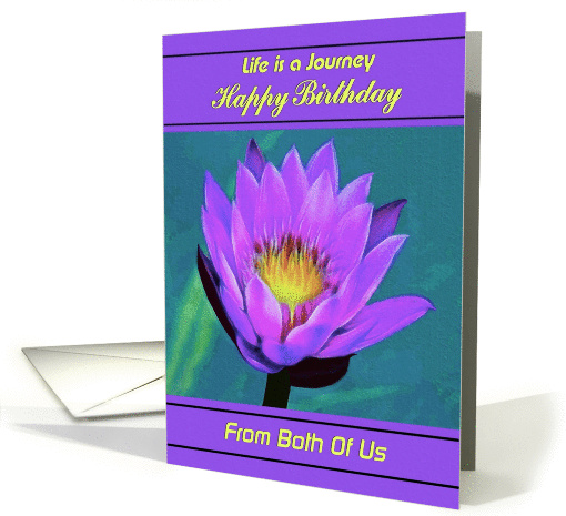 Remember their special day by sending your Birthday well wishes with this card created with a Fractalius treatment and digitally oil painted. This lovely modern artwork in soft pastel tones of a purple Lotus flower floating in a pond makes a lovely Birthday greeting card for family or friends from Both of You. You can use the inner verse or personalize it further by adding sentiments of your own. ©2014 SmudgeArt