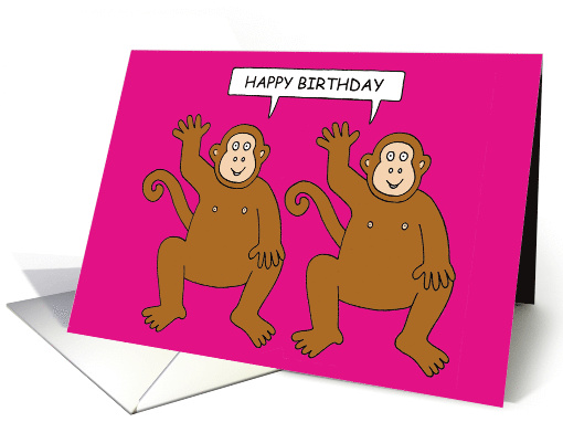 Happy Birthday from Two Cheeky Cartoon Monkeys Twin Chimps Fun