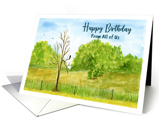 | Artist Notes: | Give someone special this lovely card from a group to wish them a very Happy Birthday. A pleasant rural setting with early Fall foliage, a vivid sky, a bird perched in a tree, and a tall grassy field is depicted in this watercolor card design. |