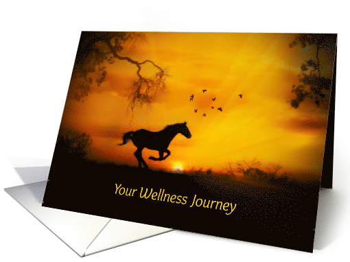 A show of support for someone not feeling well. Getting well is a journey sometimes. This pretty horse and sunrise with birds is a great give encouragement when someone is under the weather.