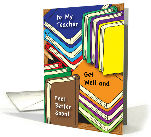 | Artist Notes: | This is a get well card for a teacher, featuring stacks of colorful books. You may change the inside message at checkout, if you wish. |