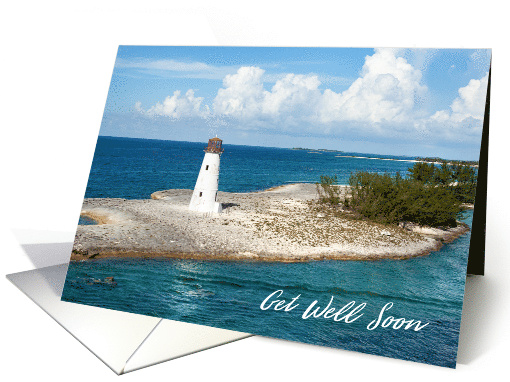 Brighten someone's day who isn't feeling well with this beautiful lighthouse on a small island in the crystal clear blue waters of the Bahamas.