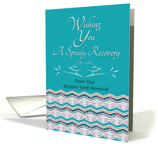| Artist Notes: | Unique bird zigzag pattern with shades of turquoise, violet red and brown and lovely bird silhouettes are featured on this meaningful get well message for a speedy recovery from wisdom teeth removal. Original design by Anura Design Studio. |
