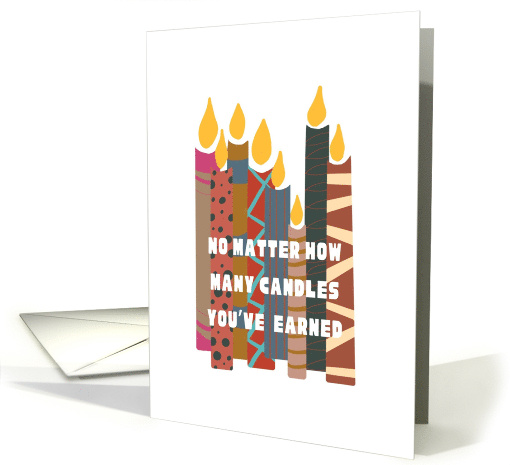 Artist Notes: | Getting older is part of life for everyone. Keeping a fun outlook and a humorous perspective makes celebrating getting older something to look forward to. This abstract candle birthday card with relevant text makes a great card option for anyone in your life who has reached a certain age. Design by © Randi Perez Helm 2023 |