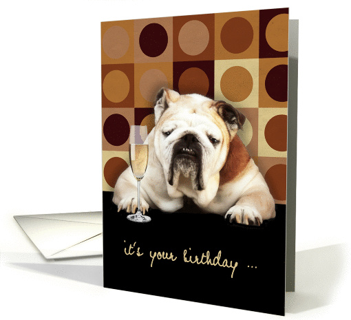 | Artist Notes: | Send humorous birthday wishes to that male friend or family member who's getting older with this funny retro Birthday card featuring a bulldog with a glass of champagne. You can edit text inside card yourself. Custom requests welcome! |