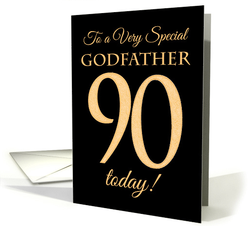 | Artist Notes: | A chic 90th Birthday Card for a 'Very Special Godfather', with a number 90 composed of gold-effect numbers and the words 'Godfather', in gold-effect, on a black background. The inside message, which you can change if you wish, is 'Happy Birthday' and other ages can be made on request. |