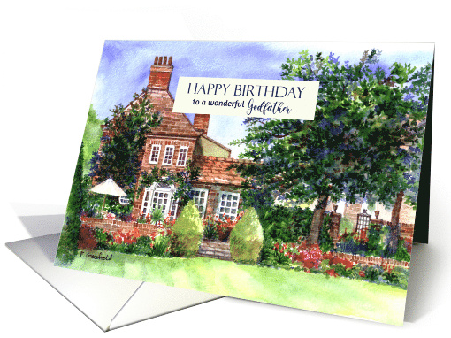 | Artist Notes: | Based on watercolor painting by myself, Farida Greenfield of Manor House in Heslington, York, England. A stunning traditional British house and beautiful garden around it with colorful flowers, shrubs and green trees inside enclosure of brick wall, an idyllic peaceful place. The card is designed for Godfather on Birthday. |