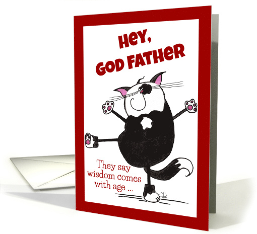| Artist Notes: | ©Christie Black. Wish your godfather a happy birthday in a humor-filled way. A silly kitty with black and white hair dances and shows off in this card for someone getting up there in age. |