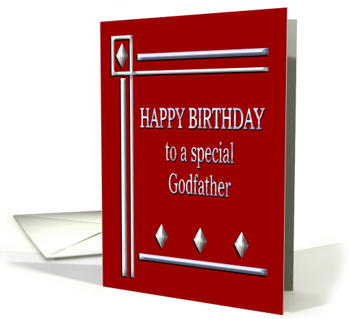 | Artist Notes: | Wish that special Godfather a wonderful Happy Birthday with this handsome red card with silver lettering and silver border. |