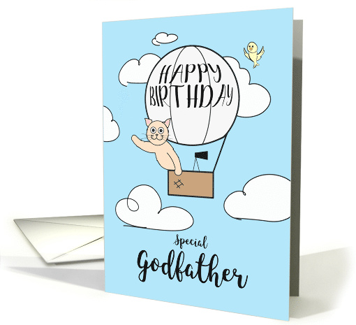| Title: | Godfather Birthday Across the Miles Cute Cat in Hot Air Balloon |