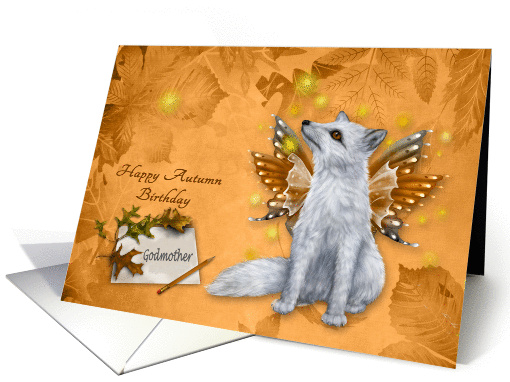 | Artist Notes: | Wish your godmother a Happy Autumn Birthday a beautiful mystical fox with wings, sitting next to a note pad with a pencil against a fall gold and brown background with dark fancy text. Design by Laurie Schneider/Elements by HF-Projekte/Diana'z Designs |