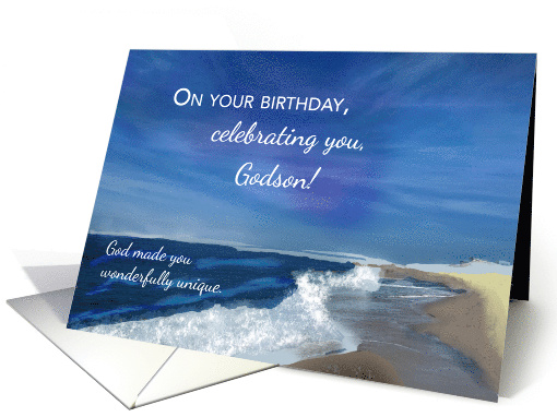 Godson Religious Birthday Waves on Ocean Blue Sky