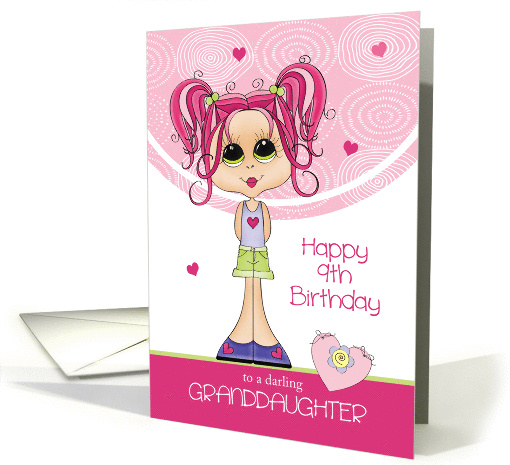 | Title: | Granddaughter 9th Birthday - Cute Girl with Pink Hearts |