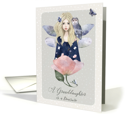 | Artist Notes: | Your granddaughter is sure to love this magical birthday greeting featuring a pretty teen girl with fairy wings, an owl on her shoulder, a butterfly, a dragonfly and flowers. |