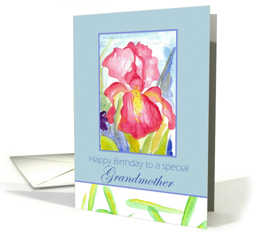 | Title: | Happy Birthday Grandmother February Pink Iris Flower Watercolor |