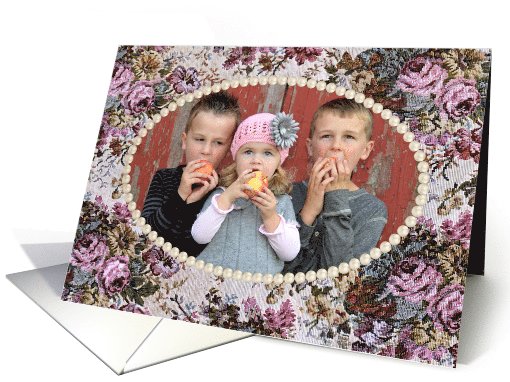 | Title: | Birthday for Grandma photo card - pearl frame on old rose tapestry |