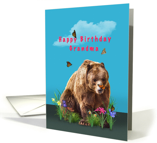 Birthday, Grandma, Bear, Butterflies, and Flowers