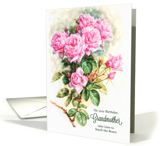 A vintage rose illustration from 1899 in lovely shades of pink is perfect to wish your grandmother a Happy Birthday and that she take time to smell the roses.