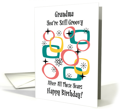 Give your wonderful Grandmother this adorable and classic Mid-Century Modern Happy Birthday card to let her know how awesome you think she is! She'll get a chuckle at the sentiment and will be uplifted by your loving wishes for her special day.