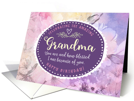 Wish your grandma a happy birthday with this unique calligraphy and hand-lettering style card, featuring the message, "Celebrating the amazing Grandma you are and how blessed I am because of you. Happy Birthday!" Includes hand-drawn style white frame on digitally textured watercolor floral background. Inside can be customized to fit your needs.
