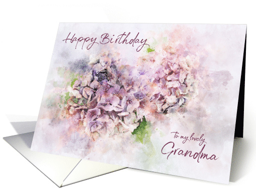 A splashy digital watercolor of two beautiful pink and lilac Hydrangea flower heads created from my original photograph. A really pretty card perfect for your Grandma. © Ann Garrett