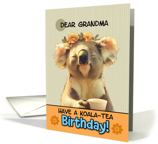 Title: Grandma Happy Birthday Blissful Koala Bear with Cup of Tea