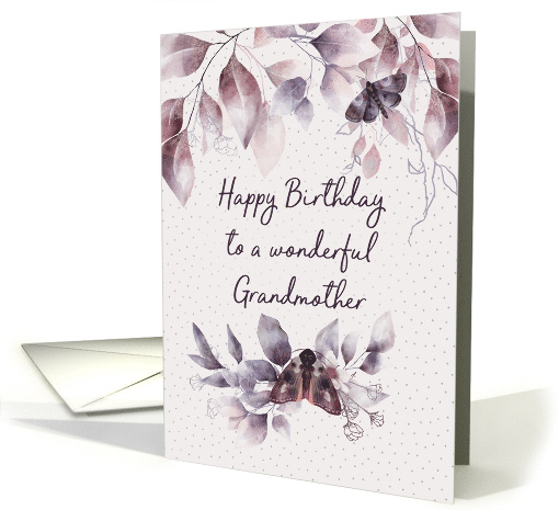 This pretty modern floral design in soft plum colors is sure to please your grandmother on her birthday. Lovely feminine flowers are joined by a pair of moths.
